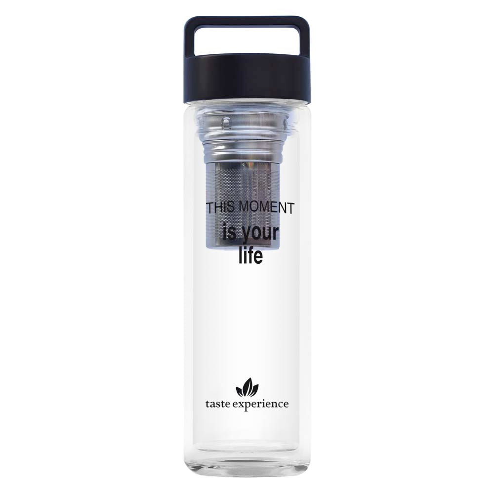 Unsere This Moment Thermo Bottle Black von „taste experience“ ist der perfekte Wegbegleiter für Deinen heißen oder kalten Teegenuss. Durch das integrierte Teesieb ist es Dir jetzt vereinfacht, von zuhause aus oder unterwegs Deinen Lieblingstee besonders leicht und schnell zuzubereiten.