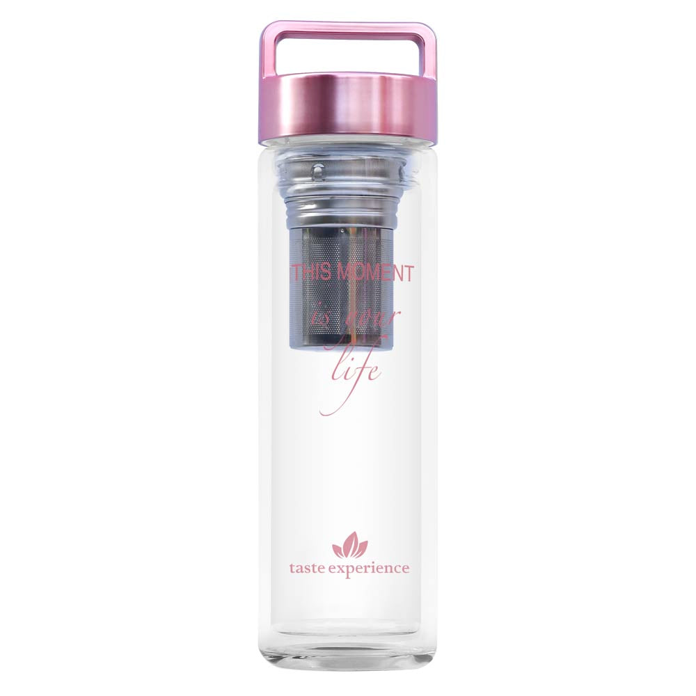 Unsere This Moment Thermo Bottle Rose von „taste experience“ ist der perfekte Wegbegleiter für Deinen heißen oder kalten Teegenuss. Durch das integrierte Teesieb ist es Dir jetzt vereinfacht, von zuhause aus oder unterwegs Deinen Lieblingstee besonders leicht und schnell zuzubereiten.